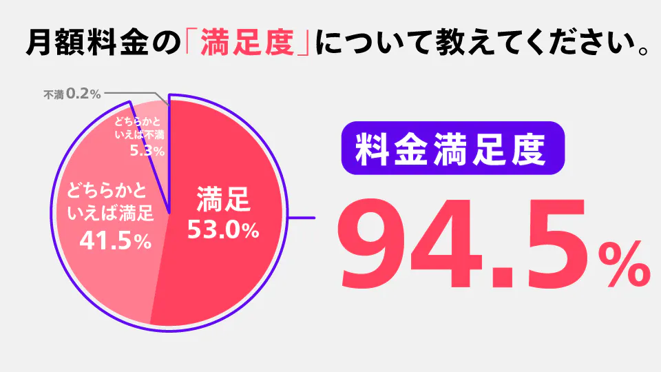 総合満足度、料金満足度ともに93%以上の高い評価をいただくことができました。