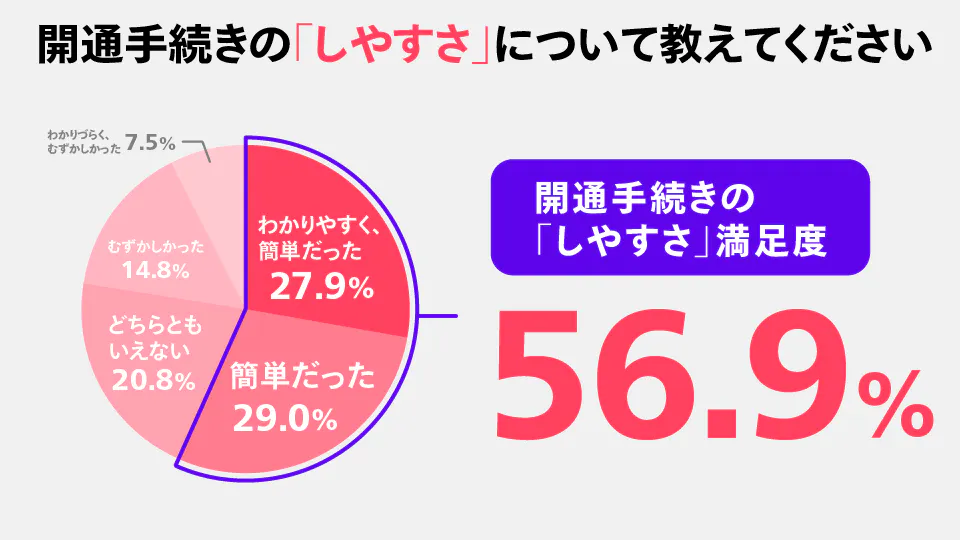 「申し込み」「本人確認」「開通手続き」に関しては、MNP乗り換えやeSIMの利用経験があるお客さまかはらスムーズだったという声がある一方、eSIMのご利用が初めての場合や、当社が用意しているマニュアルと機種によっては実際の画面が異なるケース等において、手続きが分かりにくかったという声を多くいただきました。